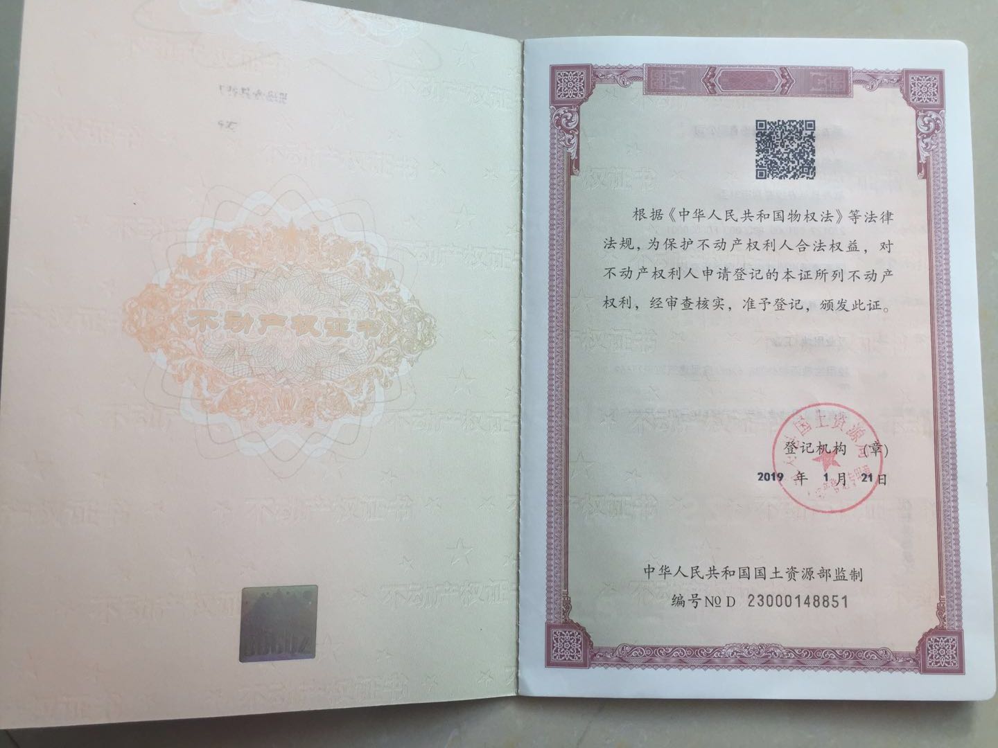 该证书由中华人民共和国国土资源部监制,由延寿县国土资源局颁发,经各级单位及部门逐级审查,最终以完整的手续办理该不动产权证书。此次共取得2本不动产权证书,权利人分别是hth华体会体育APP官方网站和黑龙江华体会hth商贸有限责任公司。