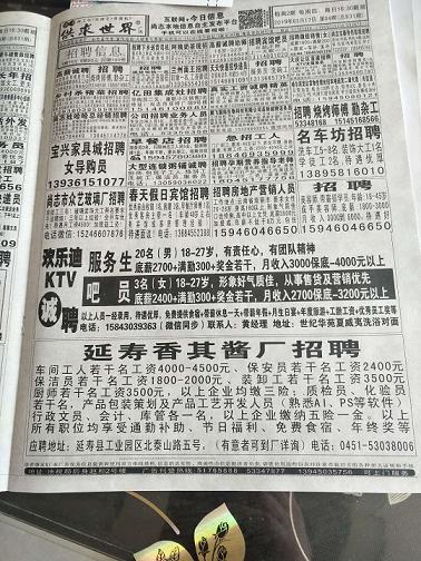 在一线管理人员方面,人事部门积极协助、配合各单位招聘一线工人,基本满足公司对一线操作人员的需求,人事部门主要通过报纸、微信公众号、各地区大管家微信平台、电视广告滚动字幕、微信朋友圈等方式从年初开始不停在发布招工信息,同时也深入周边尚志市、宾县、方正县等发布招工信息。